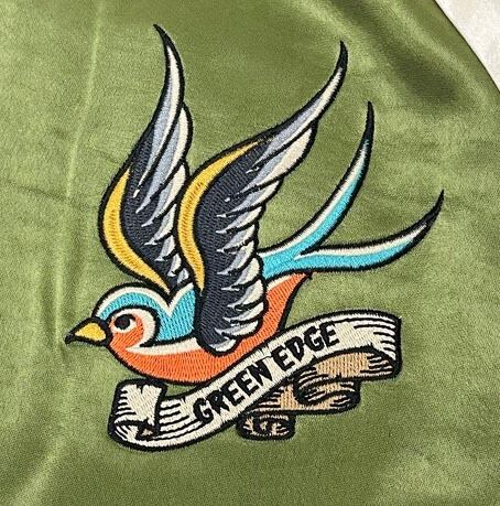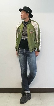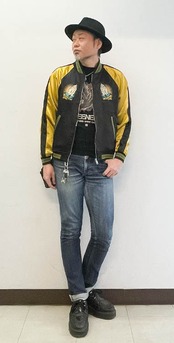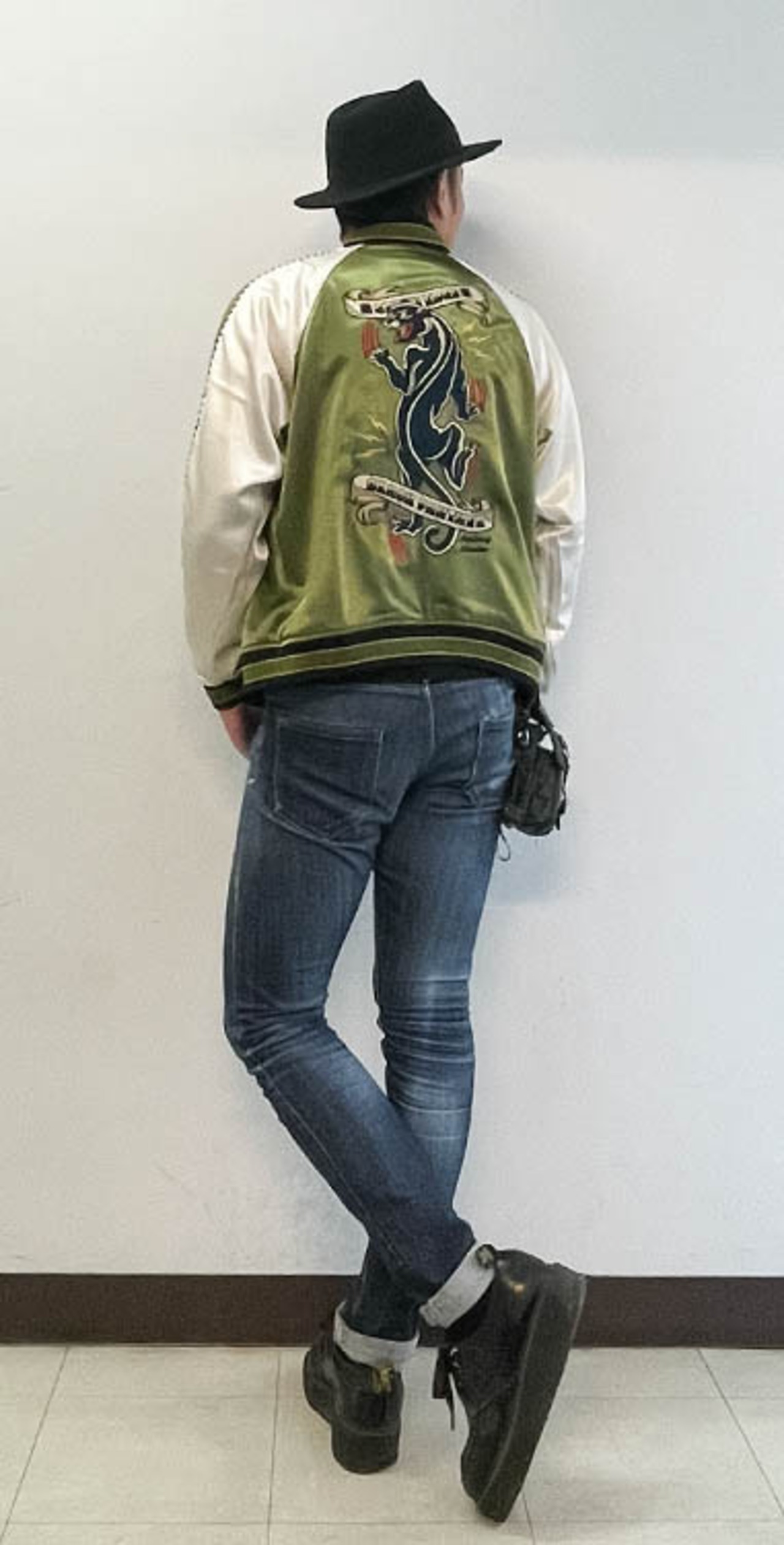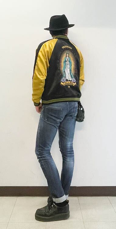 あえてレーヨンにしなかったのは扱いにくくダメージがかかりやすいレーヨンよりも扱いが簡単で丈夫な生地を使用して気軽に着てもらえたらと思いこちらの生地を採用しています。形はスタンダードなスカジャンよりも細身でシャープに見えるようなシルエットでオリジナルの形でこだわった作りになっています。