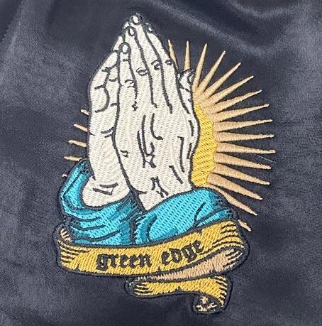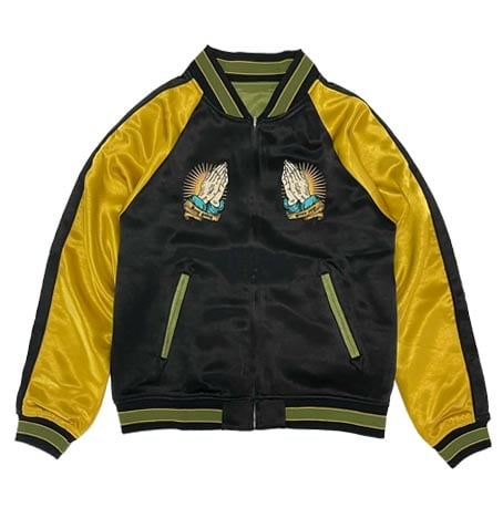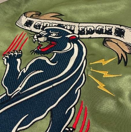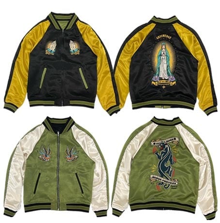 表面はプレイングハンドとマリア裏面はスワローとブラックパンサーの刺繍が施されたリバーシブル仕様で気分やスタイルによって使い分けられるお得感のあるデザインになっています。