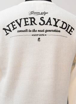 死神をモチーフにしたデザインをプリントしたロンTです。ヘヴィーウェイトのワッフル生地で裾はラウンドテール、脇はフラットシーマ仕立てで、大人のリラックス感を演出したアイテムです。