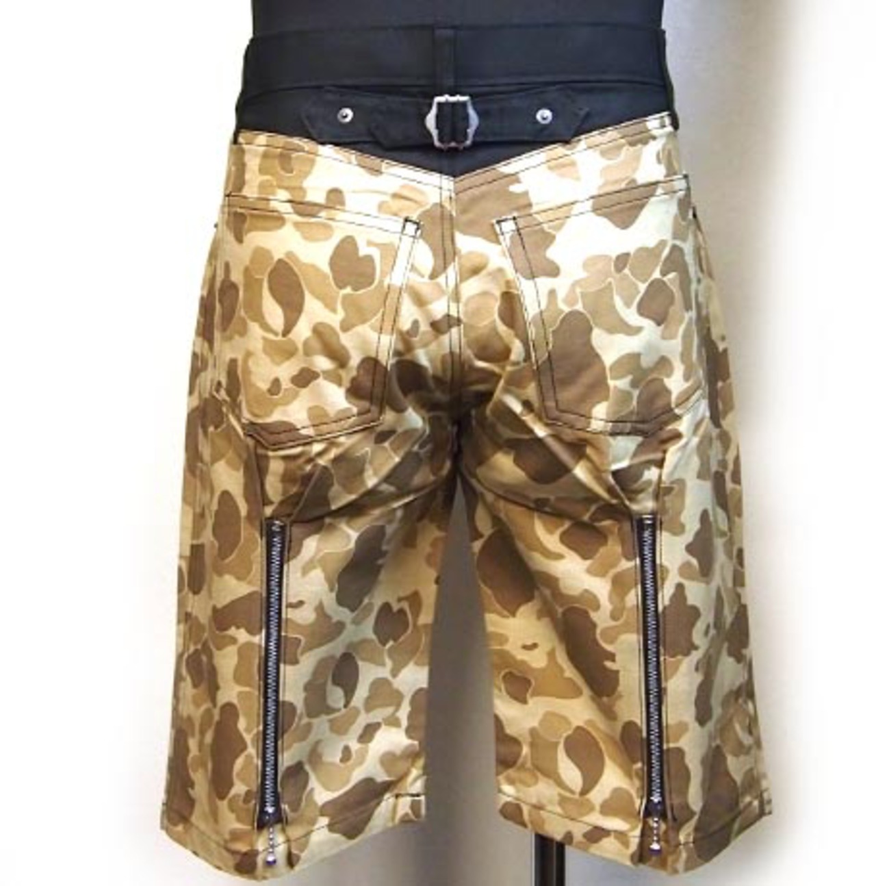 大きすぎず見た目もきれいなシルエットのZIPハーフパンツです。フロントベルトループにはD管・リベットはスカルリベットと細部の作りにもこだわっているアイテムです。バックにサイズ変更可能なZIPを付け見た目と機能も兼ね備えたデザインに仕上がっています。ハードな動きにも耐久出来るしっかりとした縫製で安心の日本製です。