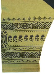 珍しい4,5分袖でTシャツなどの半袖で重ねると綺麗な出かたになるように計算された作りになっています。シルエットも綺麗なラグランで重ね着でも1枚でも着られ使いやすいアイテムです。袖にはケルト柄のプリントとフロントにロゴ刺繍が入ったおすすめアイテムになります。