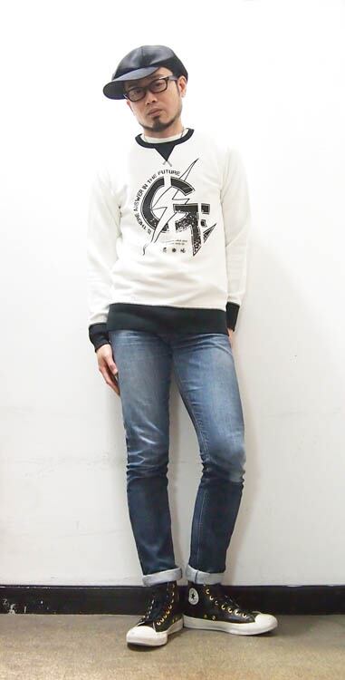 ビンテージ風の形で使いやすいアイテムです。プリントは染み込みの独特な風合いでプリントしています。