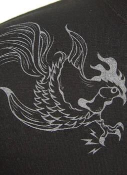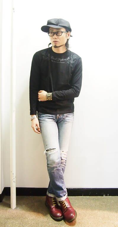 スタンダードな形のロンTで、フロントとバックに独特な雰囲気の仕上がりになるカスレ染み込みプリント技法を使用したデザインプリントを施しています。