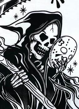 死神とジェイソンをミックスしたデザインのロンTです。フロント・袖・背中はシルクプリントです。